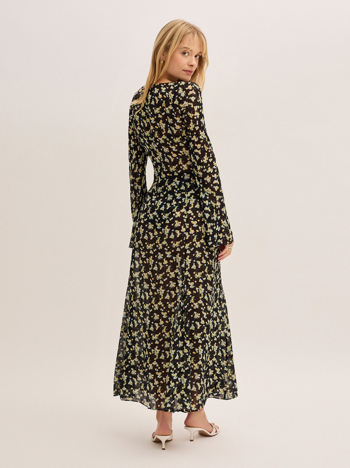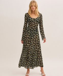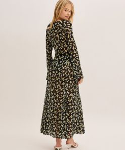 KITRI Women’s Alessia Black Cherry Print Maxi Dress | Black Cherry