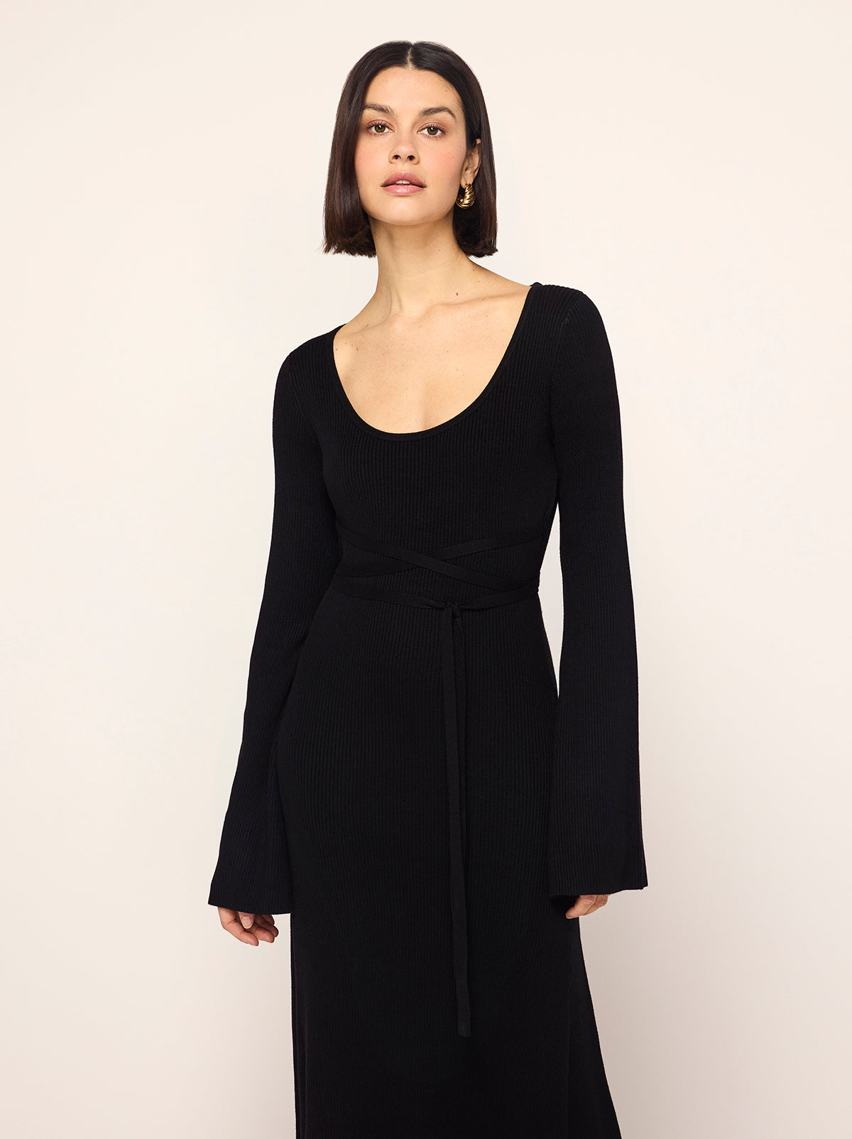 KITRI Women’s Darryl Black Ribbed Knit Dress | Black Ribbed Knit