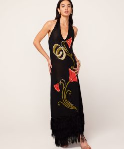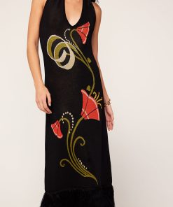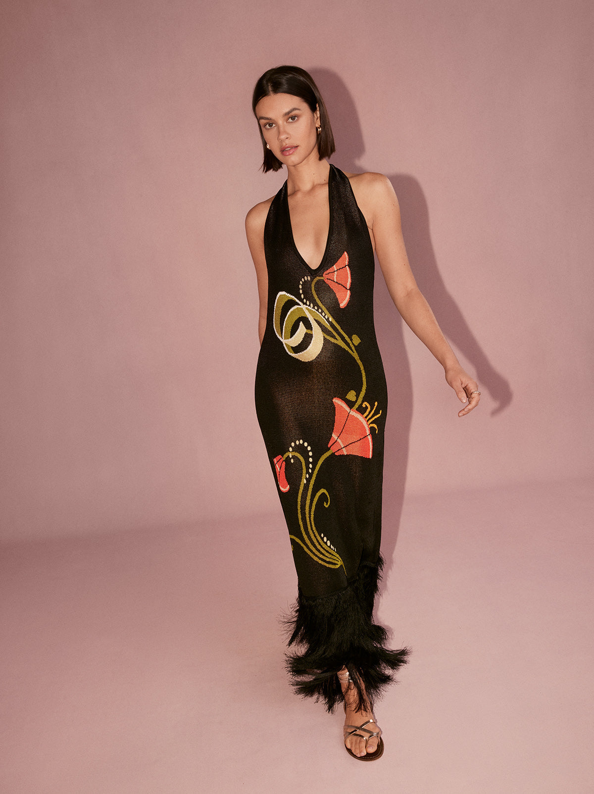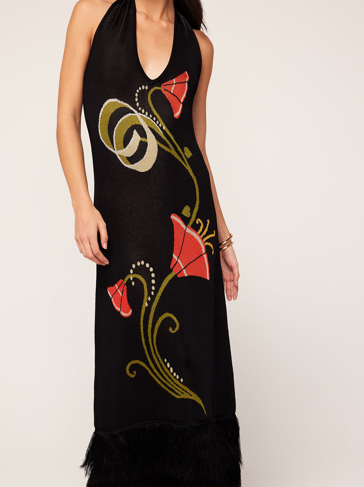 KITRI Women’s Georgia Intarsia Knit Halter Dress | Black