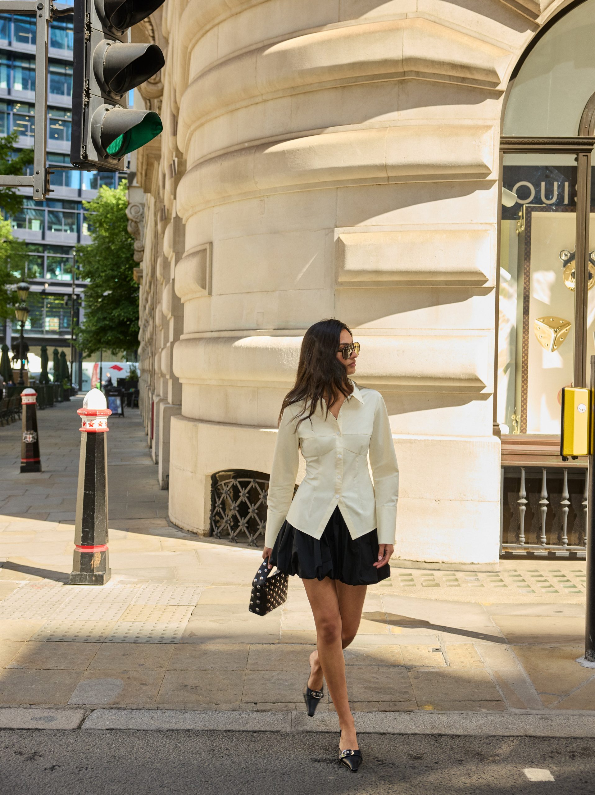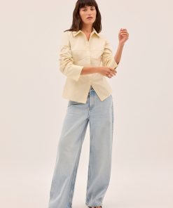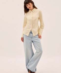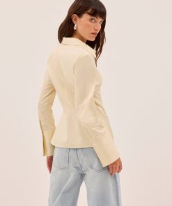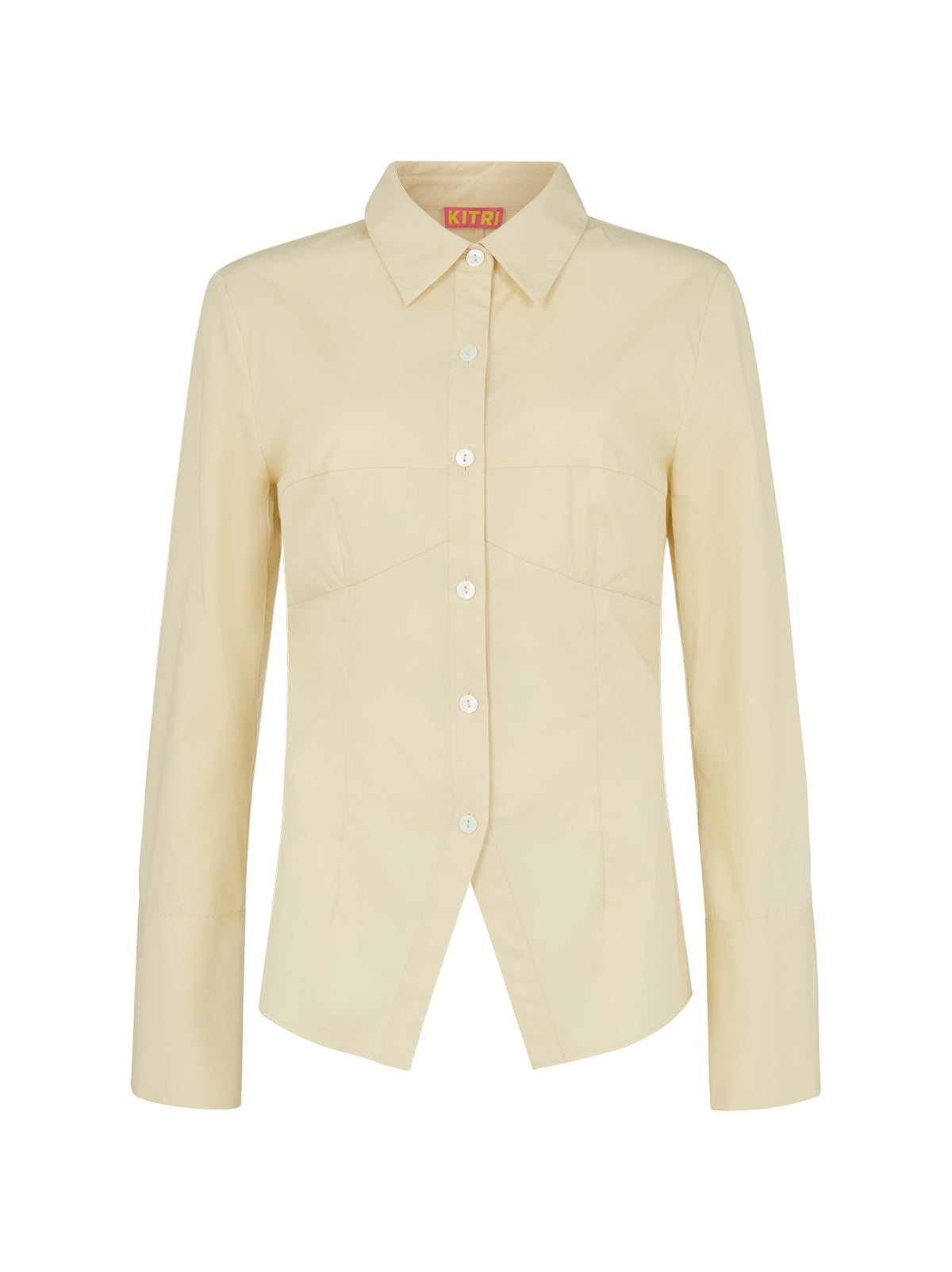 A refined take on a wardrobe classic. The Jesse shirt debuts a new silhouette, cut from mid-weight 100% cotton in a soft vanilla hue. Featuring a sharp collar, deep buttoned cuffs, and corset-inspired seaming, this tailored style cinches at the waist for a flattering, structured fit. Designed to elevate your everyday wardrobe with polished ease.