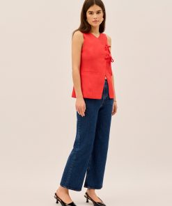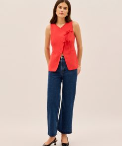 Step into effortless sophistication with our Lea waistcoat – a contemporary take on classic tailoring that adds instant polish to any look. This vibrant red piece features a thoughtfully designed signature tie detail at the front that creates a flattering and elegant asymmetric finish while adding a touch of playful twist.