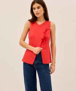 Vintage-inspired with a modern edge, the Maia Top in brilliant red is here to elevate your wardrobe. Designed in luxurious satin with a flattering gathered bodice and sleeves, this long-sleeve blouse brings effortless femininity to any look. The tie fastening with button details at the front ensures both style and function.