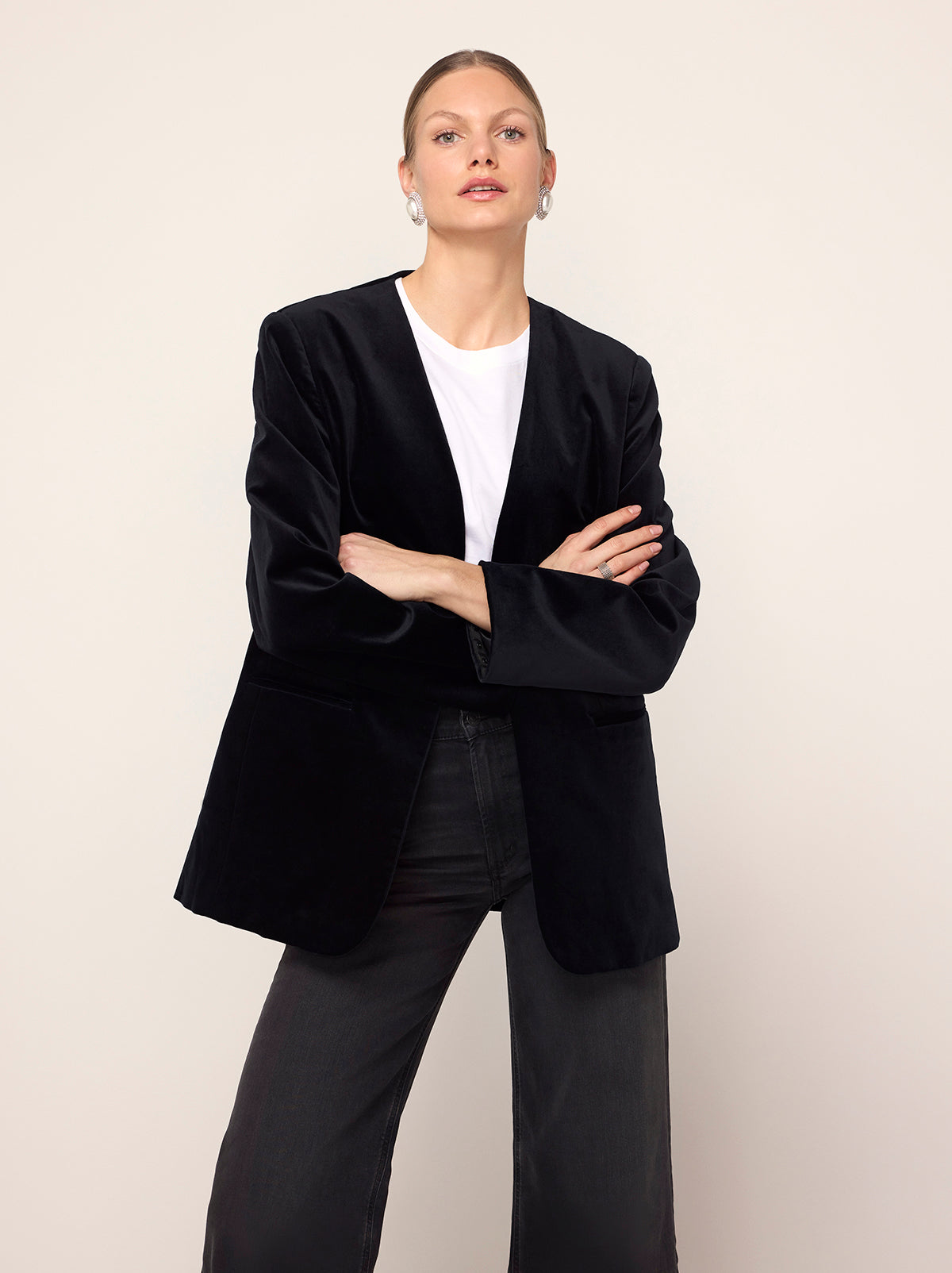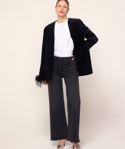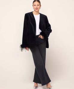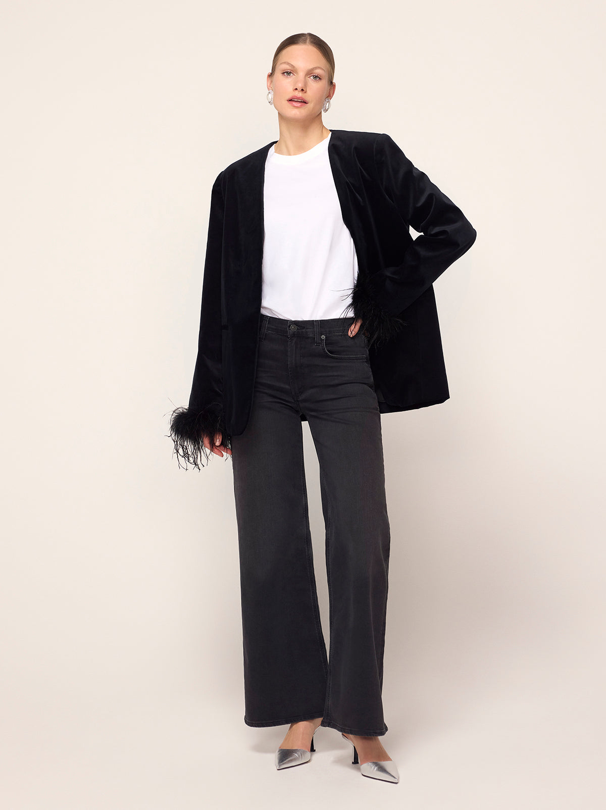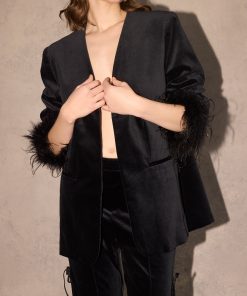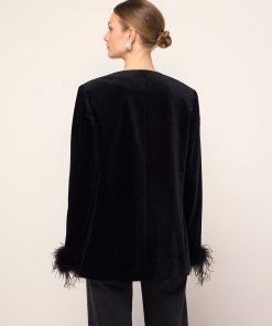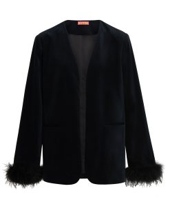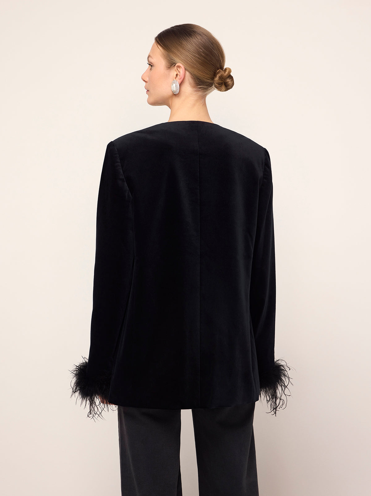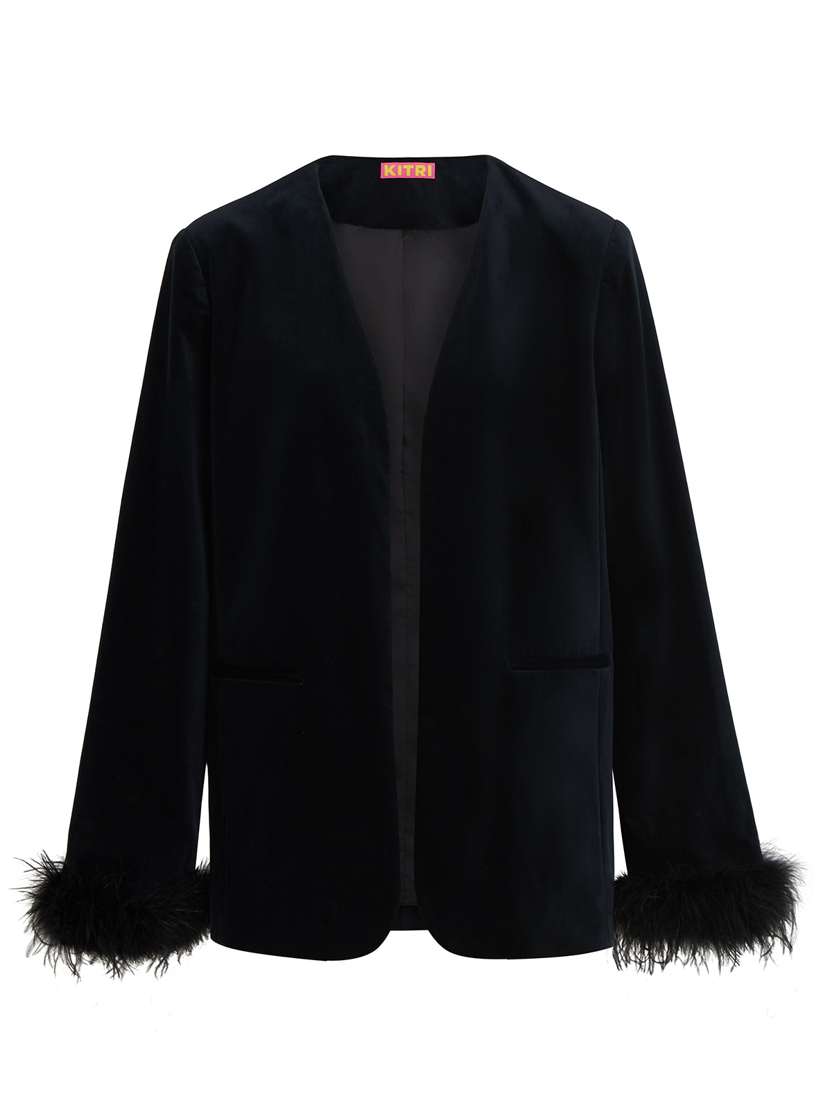 KITRI Women’s Marlene Black Velvet Feather Blazer