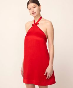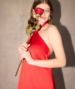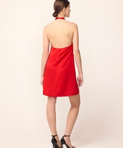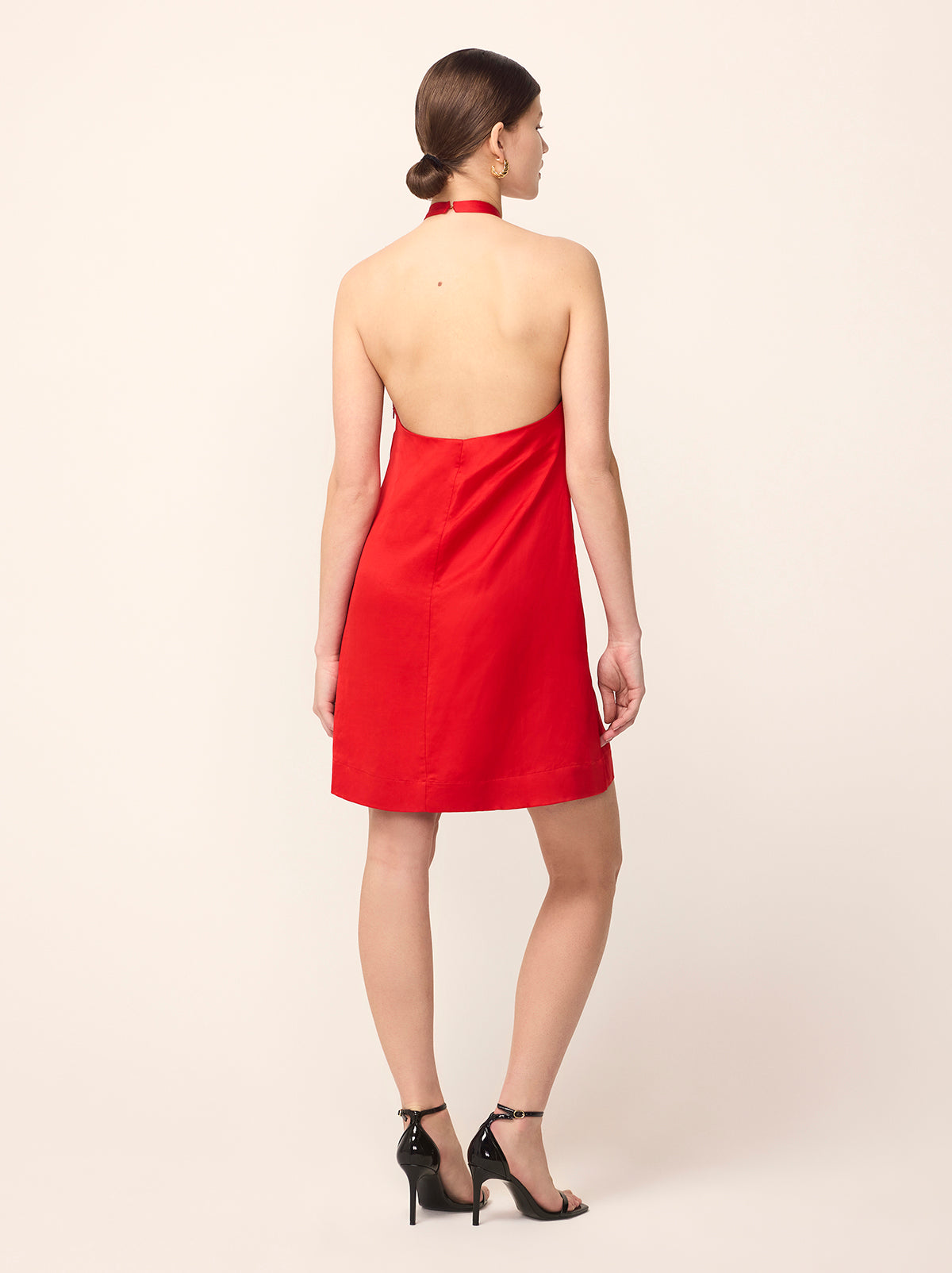 Step into the spotlight. Morgan is a playful halterneck mini dress with a flattering, A-line silhouette. She’s crafted from a premium salsa red viscose linen blend, providing a subtle sheen and unique rippling effect for extra dressy points. Her bow detail adds a feminine touch and heralds the ballet-theme at the heart of our collection. Did we mention she has pockets?