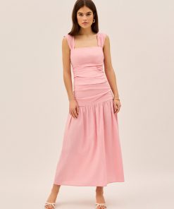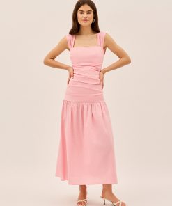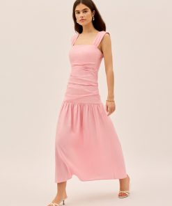 Understated elegance meets effortless cool. The Reese Dress is the definition of easy dressing with a fitted bodice that gathers in all the right places, a dropped waist for a relaxed yet polished silhouette, and a straight neckline that keeps things sleek.