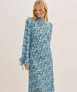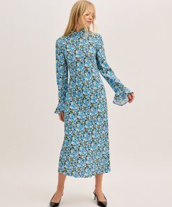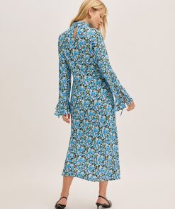 The ultimate dress to see you from winter to spring, the Rory Blue Floral Print Midi Dress features a gathered high neckline and long slim sleeves finished with frilled cuffs, designed to peek through when layered under your favourite knit. She’s the kind of dress you can rely on to take you from day to night with ease, offering timeless elegance for any occasion.