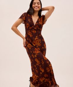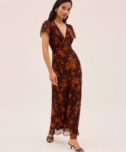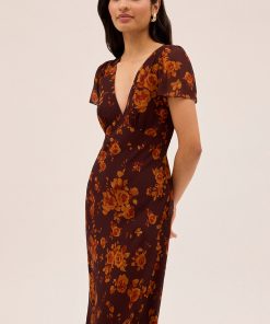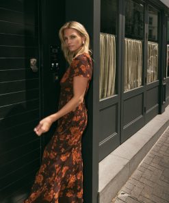 The Talia s is a most-loved KITRI classic vintage-inspired midi dress. Designed to be a true wardrobe hero, she features a flattering v-neck and a feminine bias-cut skirt that creates a beautifully fluid silhouette. Crafted from delicate viscose georgette and fully lined for effortless wear, her autumn rose print base offers endless styling options all year round.